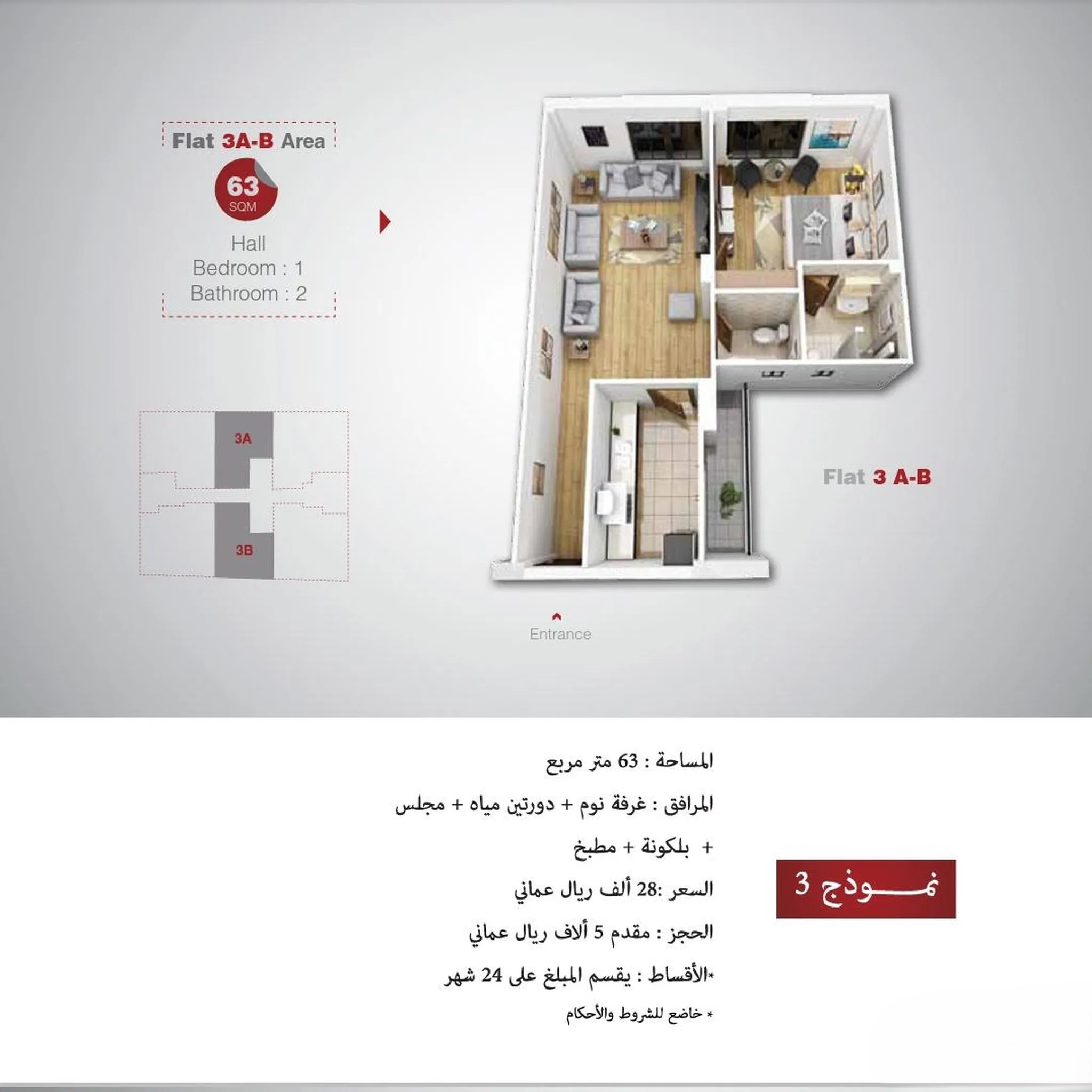 الطابق السابع ( البنت هاوس) غرفة وصالة A3 مؤجرة سكن عائلة 145 ريال العمر 5 سنوات مؤجره بعقد معتمد من البلدية الدفع مقدم للمدة عام 26500 ألف قابل للتفاوض الخوض ملاصقة محطة المها و لبنك مسقط