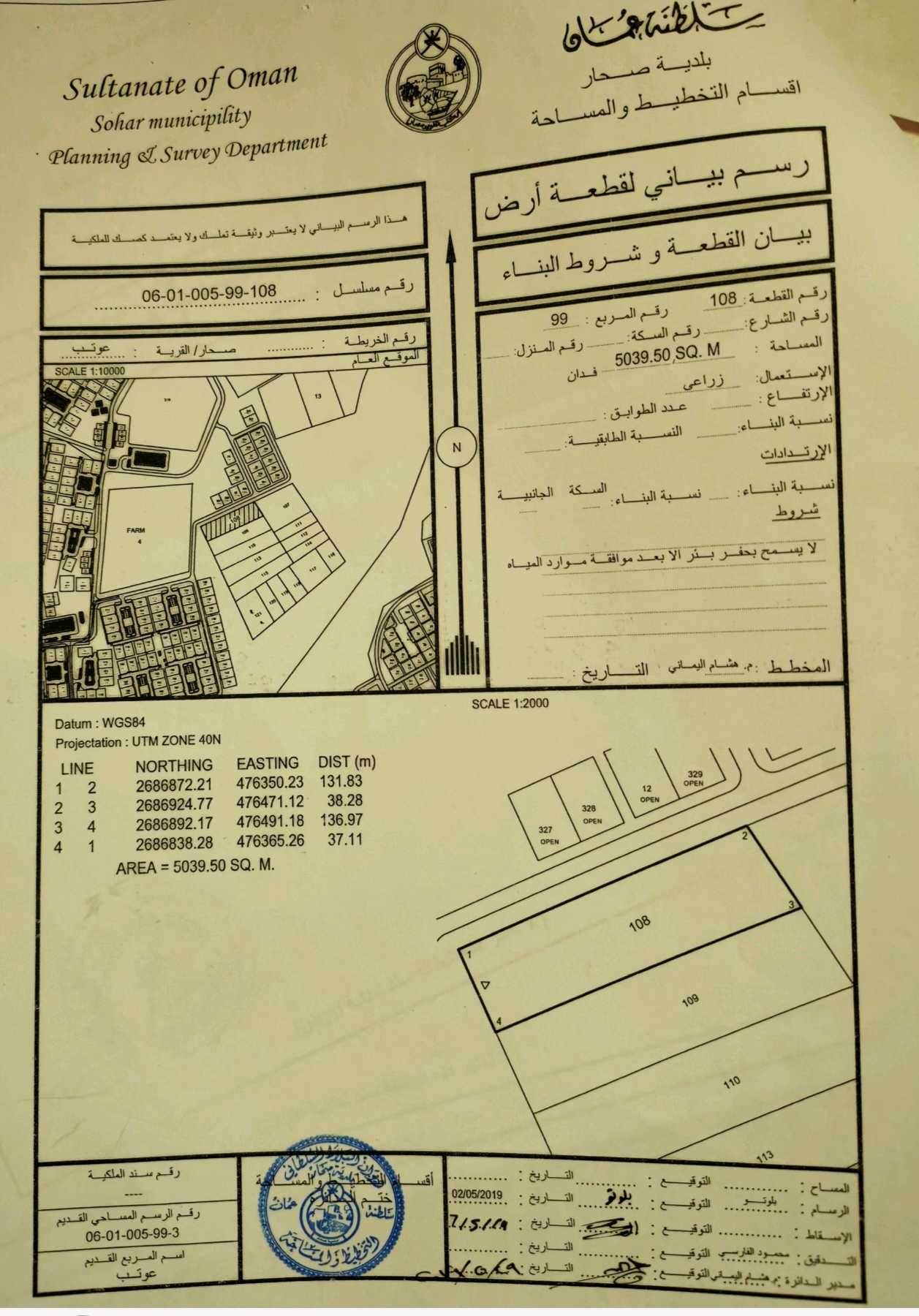ثلاث ارضي زراعية للبيع شبك في صحار من المالك مباشرة القطعه ١ و ٢ مساحة القطعه الوحده 5039.5 مطلوب ف لقطعه لوحده 90000 قابل لتفاوض القطعه الثالثه مسحتها 7559.25 مطلوب ف لقطعه 120000 قابل لتفاوض الرقم التواصل 91290776